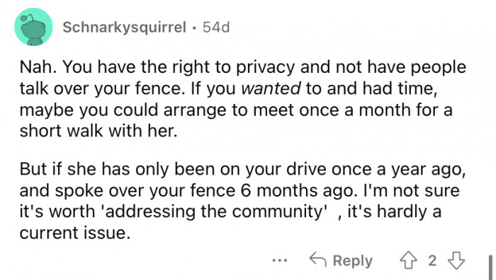 But a year ago, OP noticed the lady in her driveway talking to the dog over the fence, which made her feel a little uneasy.