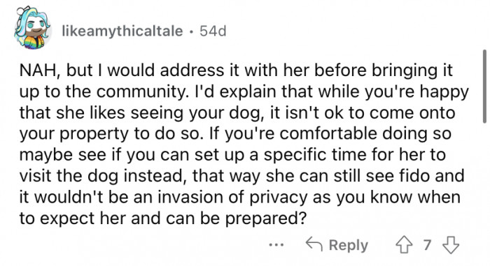 The Reddit user began to notice the woman walking by her house sometimes, so she would say hello, and if time permitted, she would bring the dog out to say hello to the lady. However, a year ago, OP noticed the lady in her driveway talking to the dog over the fence, which made her feel a little uneasy.