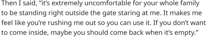 In conclusion, it is clear that the resident’s experience of being stared at by the family while using the dog park has been unwelcome and uncomfortable. Although it is understandable that the family is eager to use the park, their behavior is inappropriate and can be seen as intrusive and potentially intimidating.