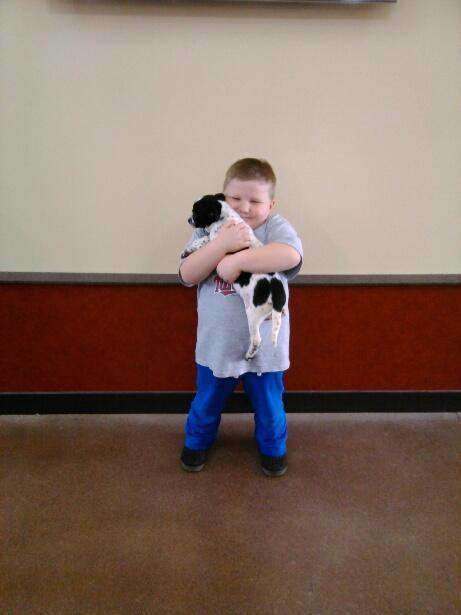 “My son and our dog, 20 minutes after we adopted her.”