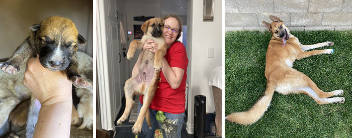 "And Here's My German Shepherd Mix, Stilgar, At 9 Days Old, 10 Weeks Old, And 3 Years Old! He Survived Distemper As A Puppy. He Is a Half Livestock Guardian Dog (Kuchi Dog)"