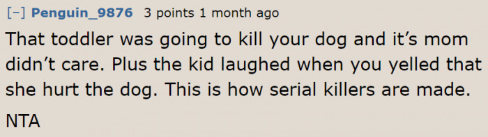 After yelling at the little one, her aunt showed up at the door and started yelling at her for what she did. Let's look at the Redditors' take on this situation.