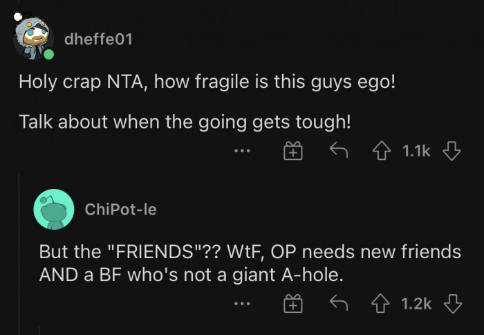 OP's boyfriend could have flaunted his girlfriend's skills and shown how proud he is to have such a skilled partner. Instead, he decided to be someone he's not and tried to impress his friends without actually having any impressive skills.