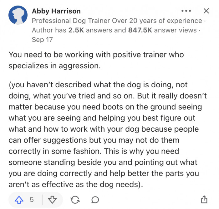 Recently, a Quora user posted a question on a topic that resulted in a resounding outpouring of support for the OP. The person asked for advice on how to train an aggressive dog.