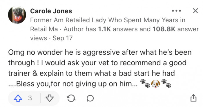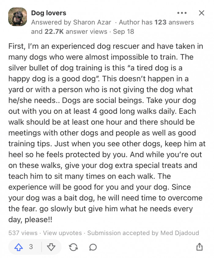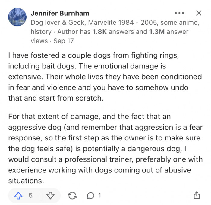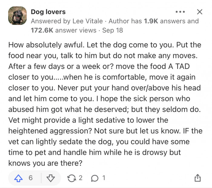 However, understandably, rehabilitating an ex-bait dog takes commitment, patience, and a lot of dedication. So, you can see why the Quora community was keen to help the OP with this one.