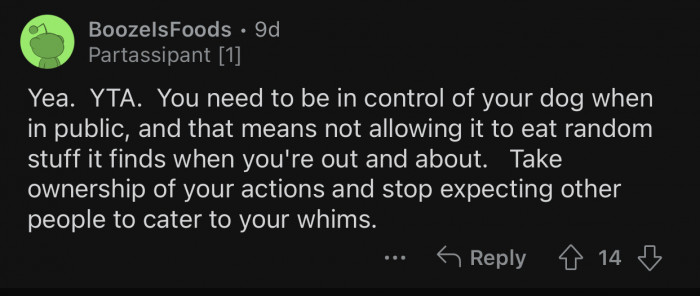 OP didn't take the necessary precautions to ensure her dog didn't get to the treats.