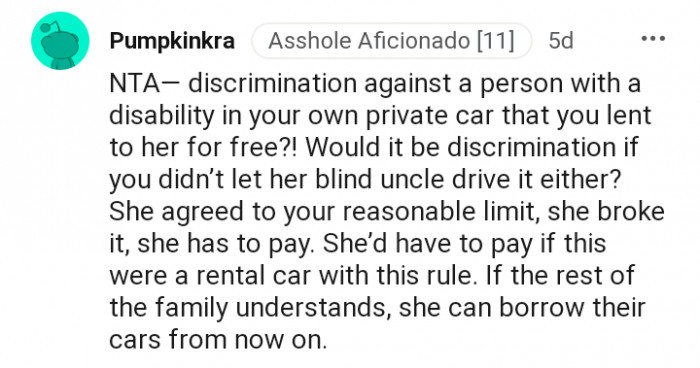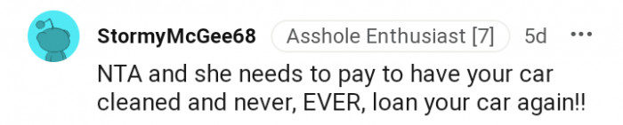 However, when the car belongs to someone else, the situation changes. The Reddit community is firmly in support of the "Your car, your rules" theory.