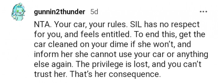 We found a story that paints a similar picture. One Redditor made a post under the AITA subreddit about an altercation with her SIL over her car.