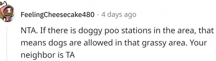 OP ignored the comment and kept walking. In the end, OP is left wondering if they are the asshole for walking their dog in the grassy area.
